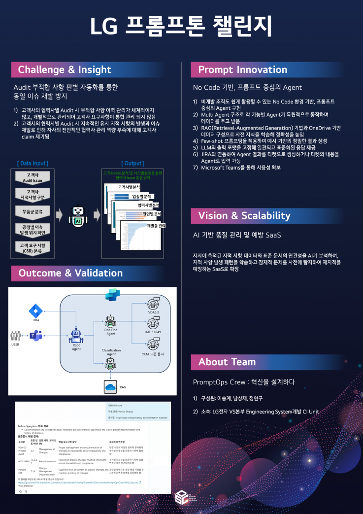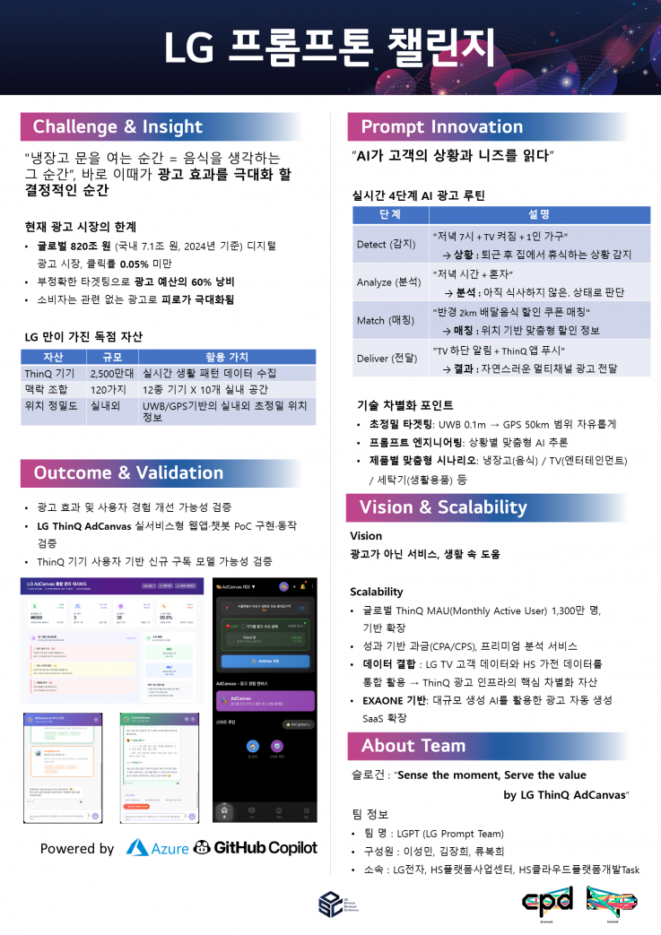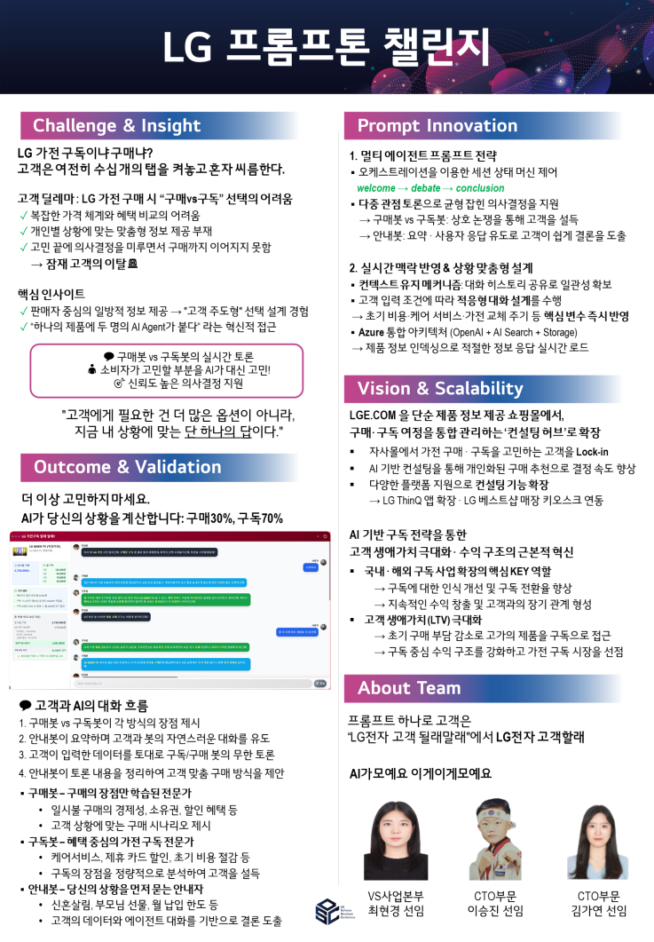 | 프롬프톤 챌린지 우수상 | 오아싀스 | 김진영, 김민정, 김정민 | LG전자 |
