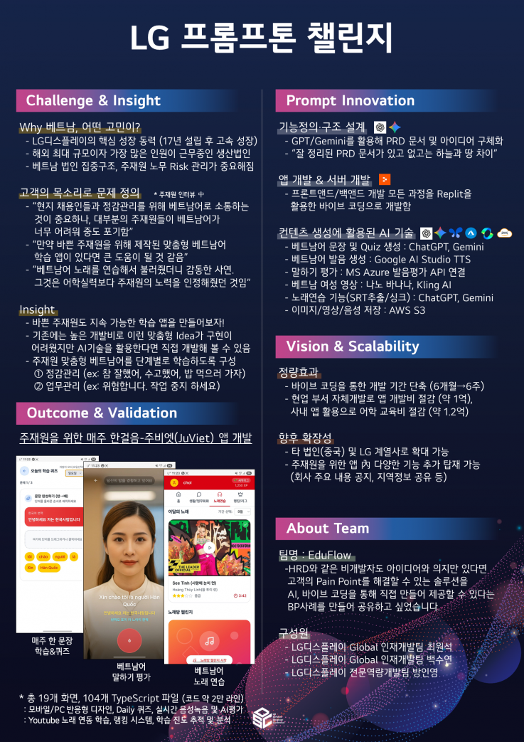 | 프롬프톤 챌린지 대상 | Eduflow | 최원석, 백수연, 방인영 | LG 디스플레이 |