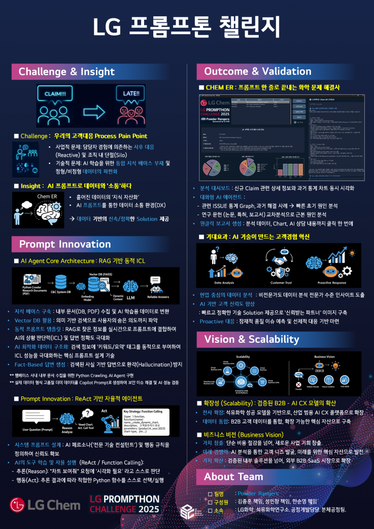 LG 프롬프톤 챌린지 2025는 고객 문제 해결과 업무 생산성 향상을 위한 AI 기반 솔루션 개발 대회입니다.