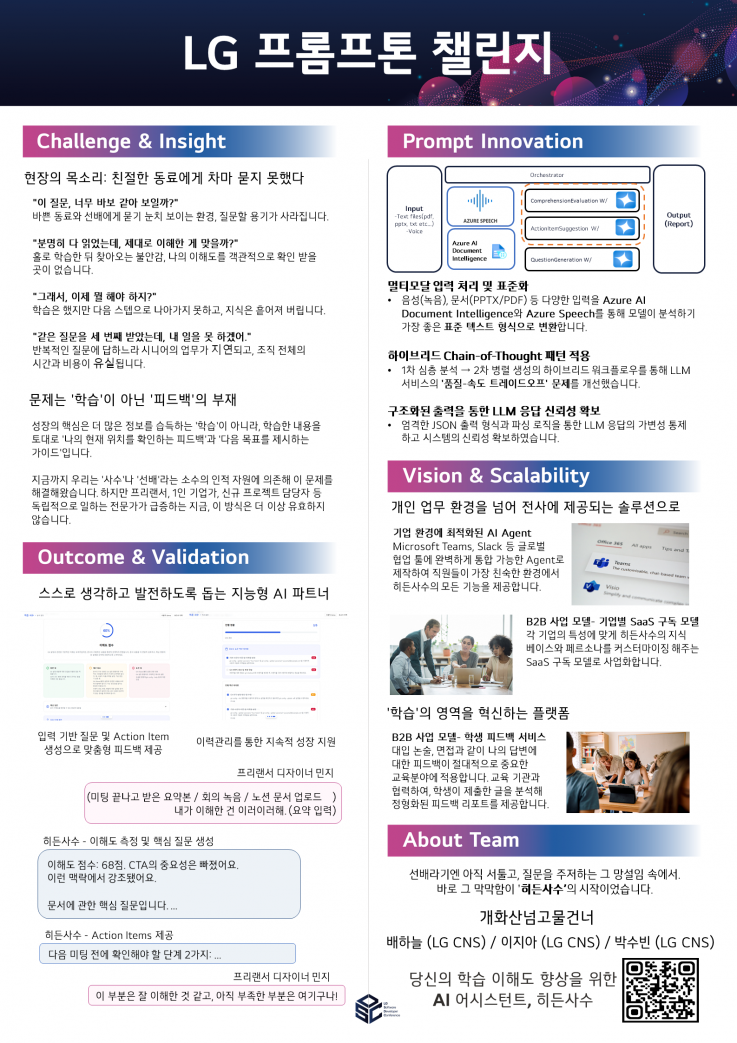 | 프롬프톤 챌린지 최우수상 | 개화산넘고물건너 | 배하늘, 이지아, 박수빈 | LG CNS |